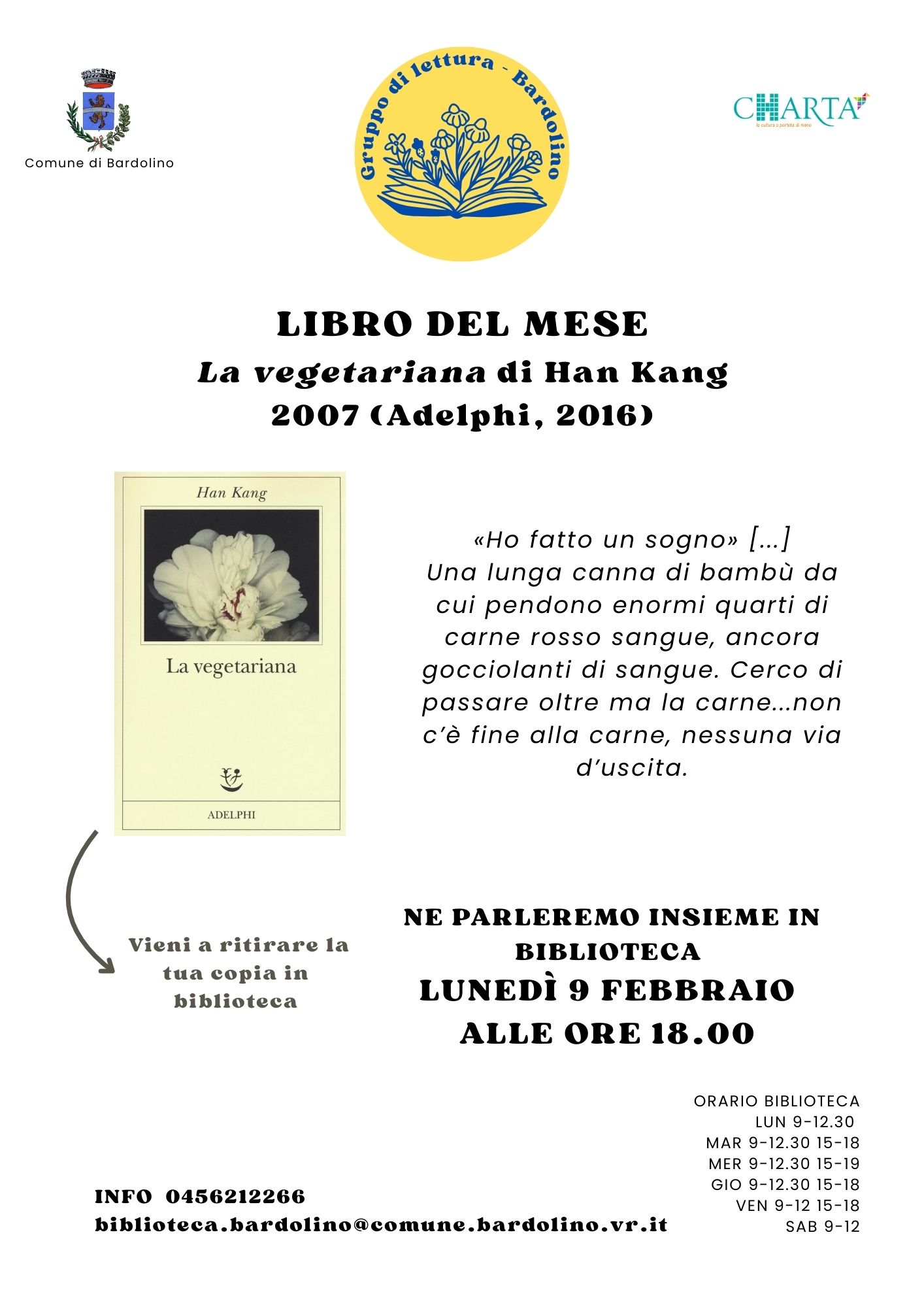 NE PARLEREMO INSIEME IN BIBLIOTECA LUNEDÌ 9 FEBBRAIO ALLE ORE 18.00