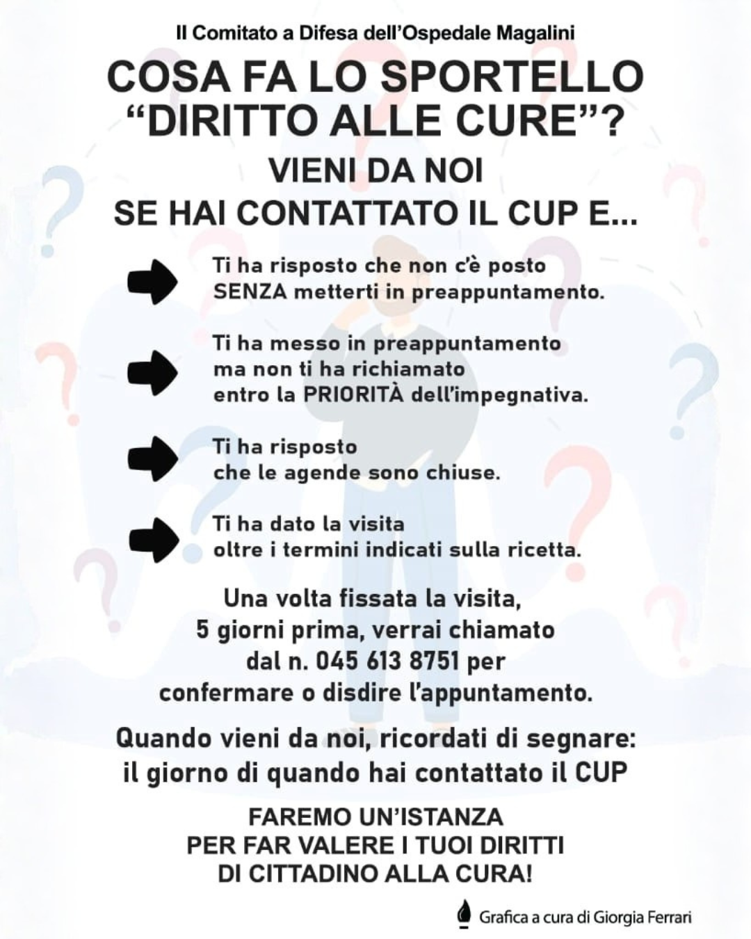 Lo sportello si rivolge in particolare a chi si è visto negare un appuntamento, inserire in preappuntamento senza successivo richiamo, o assegnare una visita oltre i termini indicati sulla ricetta.